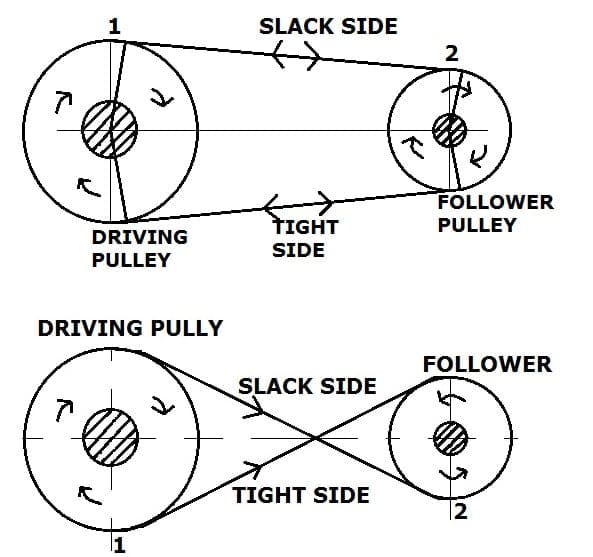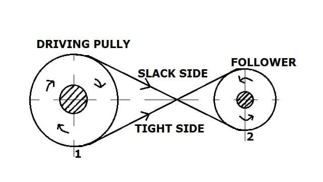 | 两个滑轮或轴(驱动和驱动)的旋转方向相同。而 | 在十字架上打赌,这两个滑轮旋转相反的方向。 |