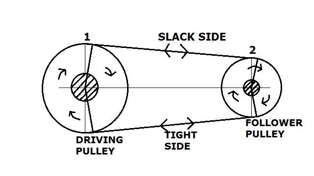 在一个开放的皮带传动,驱动轮和驱动滑轮是在同一个平面上的轴,而这些旋转方向相同。